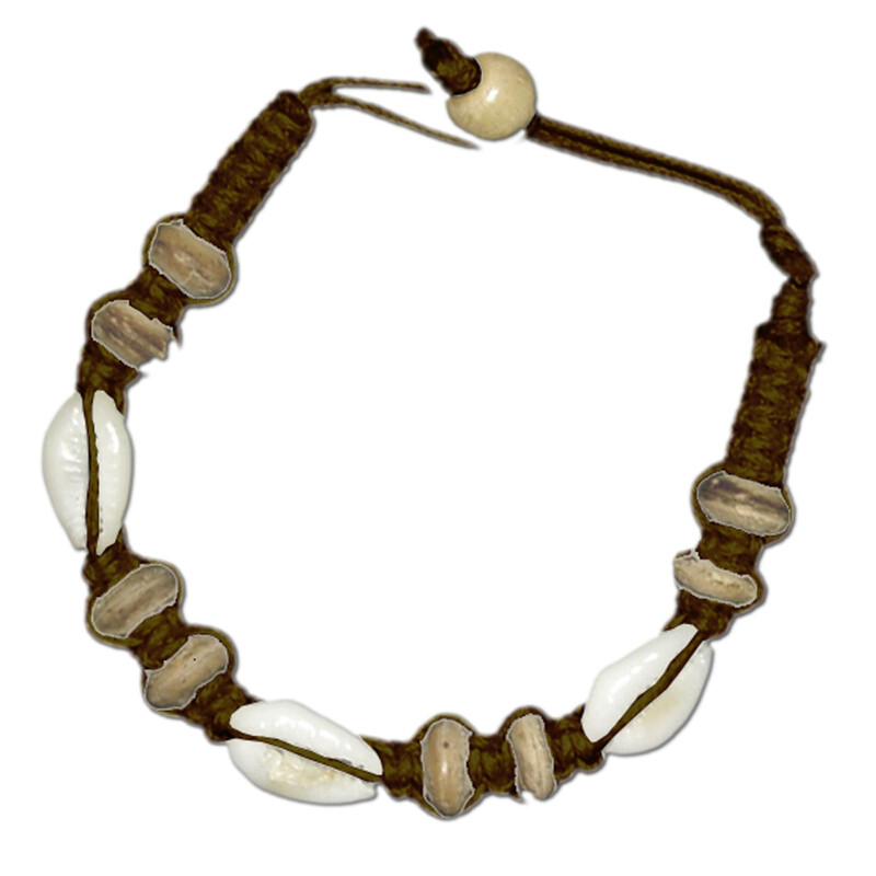 Armbänder aus echten Kauri Muscheln und - je nach Modell - anderen Holz- und Nylon Perlen