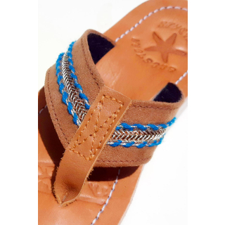 • Seestern Sandals Logo Prägung im Hackenbereich der Echtleder Obersohle