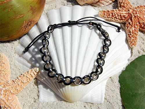 Seestern Armband / Armbänder Echtleder Band mit Metal Ösen Leder Modeschmuck /1001 Schwarz_5 Stueck