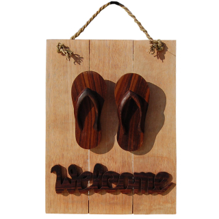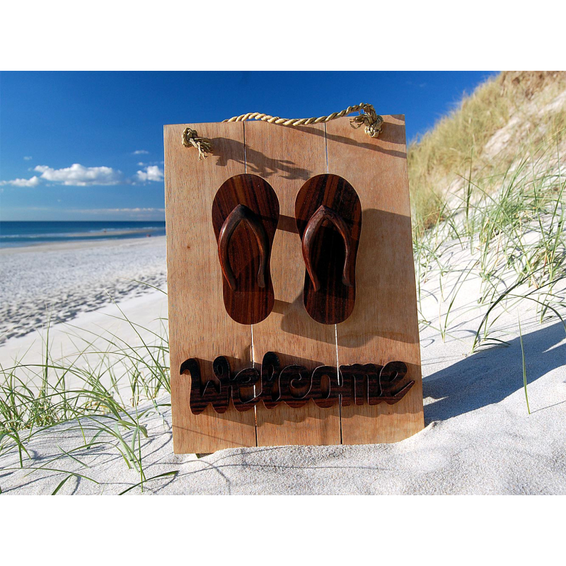 Seestern Deko Teak Holz Haustür Tür Schild Welcome mit Sandalen Motiv 40 x 30cm /1612